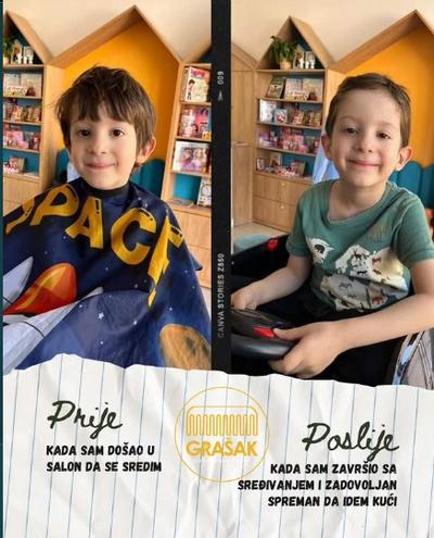 Grašak je osnovan u oktobru 2023. kao prvi dječiji frizerski salon u Crnoj Gori. Prostor isključivo za djecu — stolice u obliku autića, crtaći na ekranima, edukativne igračke i knjige od naših drugara iz Pinta.co.me.